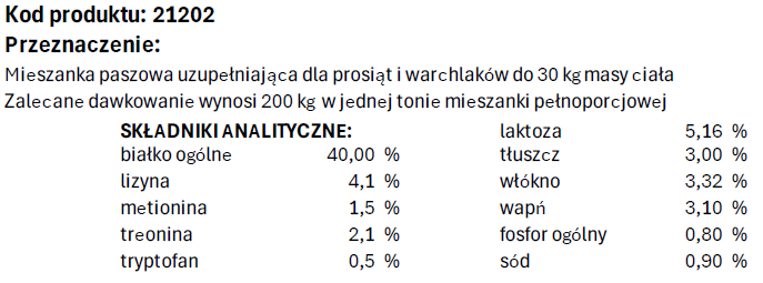 mieszanka uzupełniająca dla prosiąt i warchlaków do 30 kg m.c.