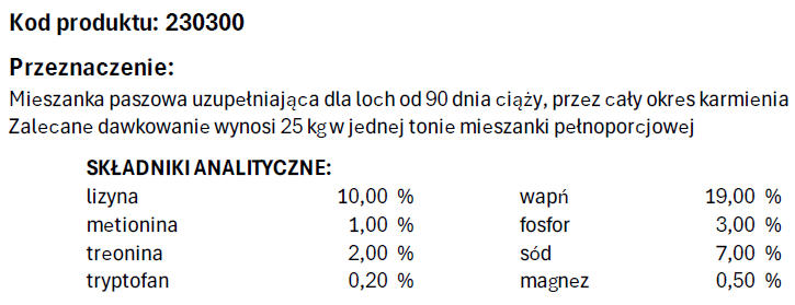 mieszanka uzupełniająca dla loch wysokoprośnych i karmiących